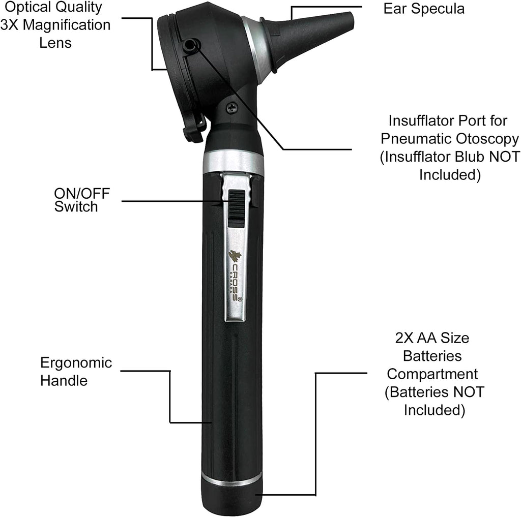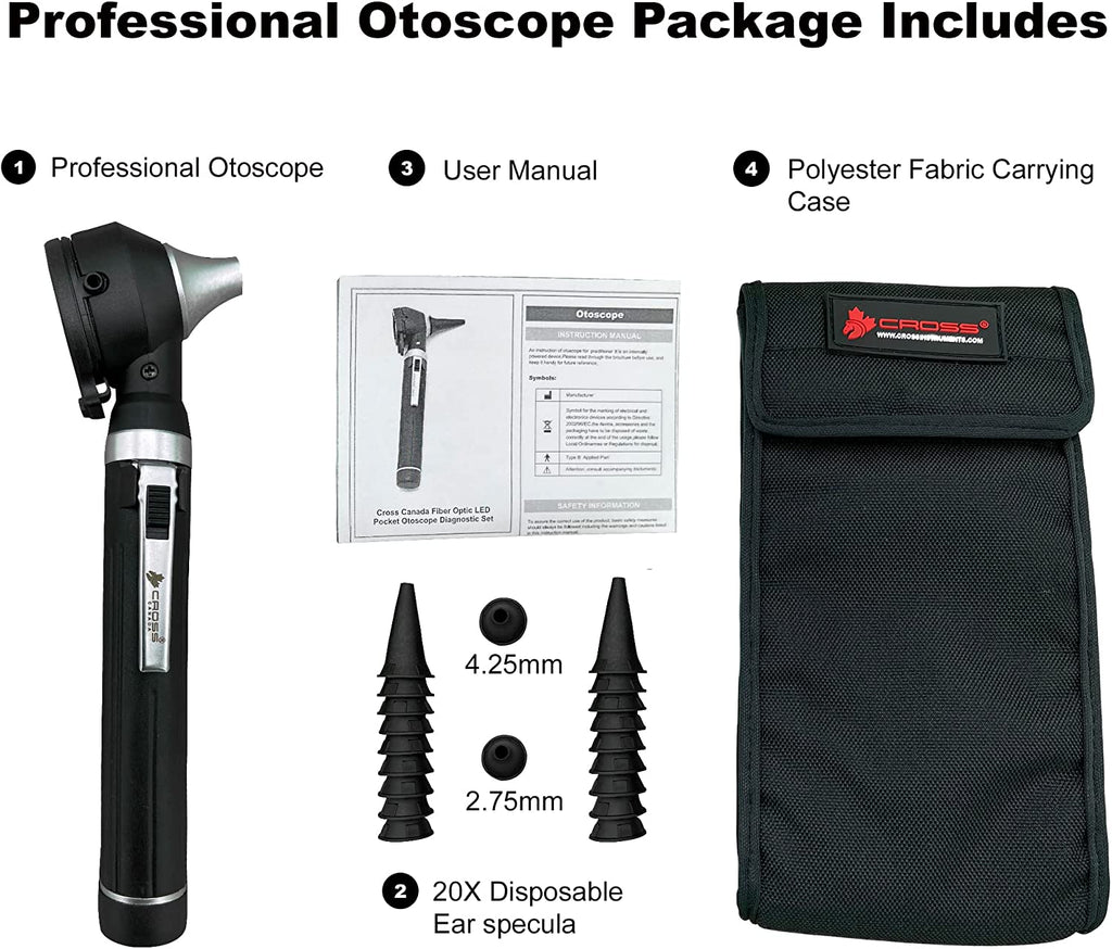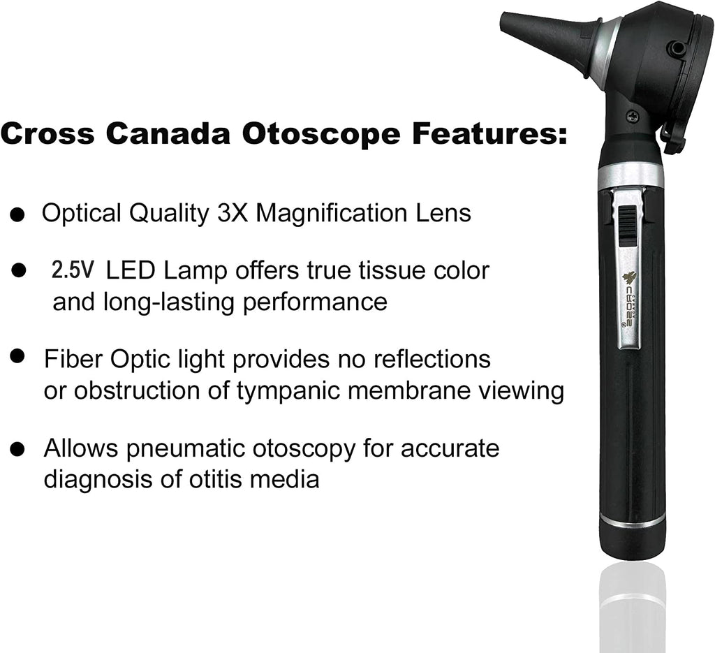 Whether you work in a busy medical office or a hospital, you are a home caregiver, a medical student, a nursing student or even a parent looking after the family at home, this Cross Canada Otoscope for medical professionals will help you visualize, examine, and monitor everything from ear obstructions to examining the fine details of the tympanic membrane and ear canal.