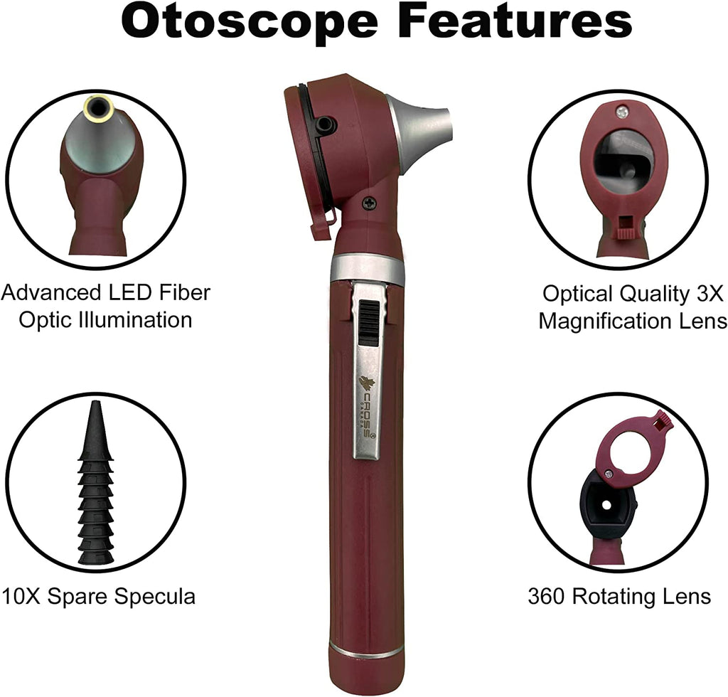 Cross Canada 11-091 Physician Fiber Optic LED Pocket Otoscope Diagnostic Set, Burgundy