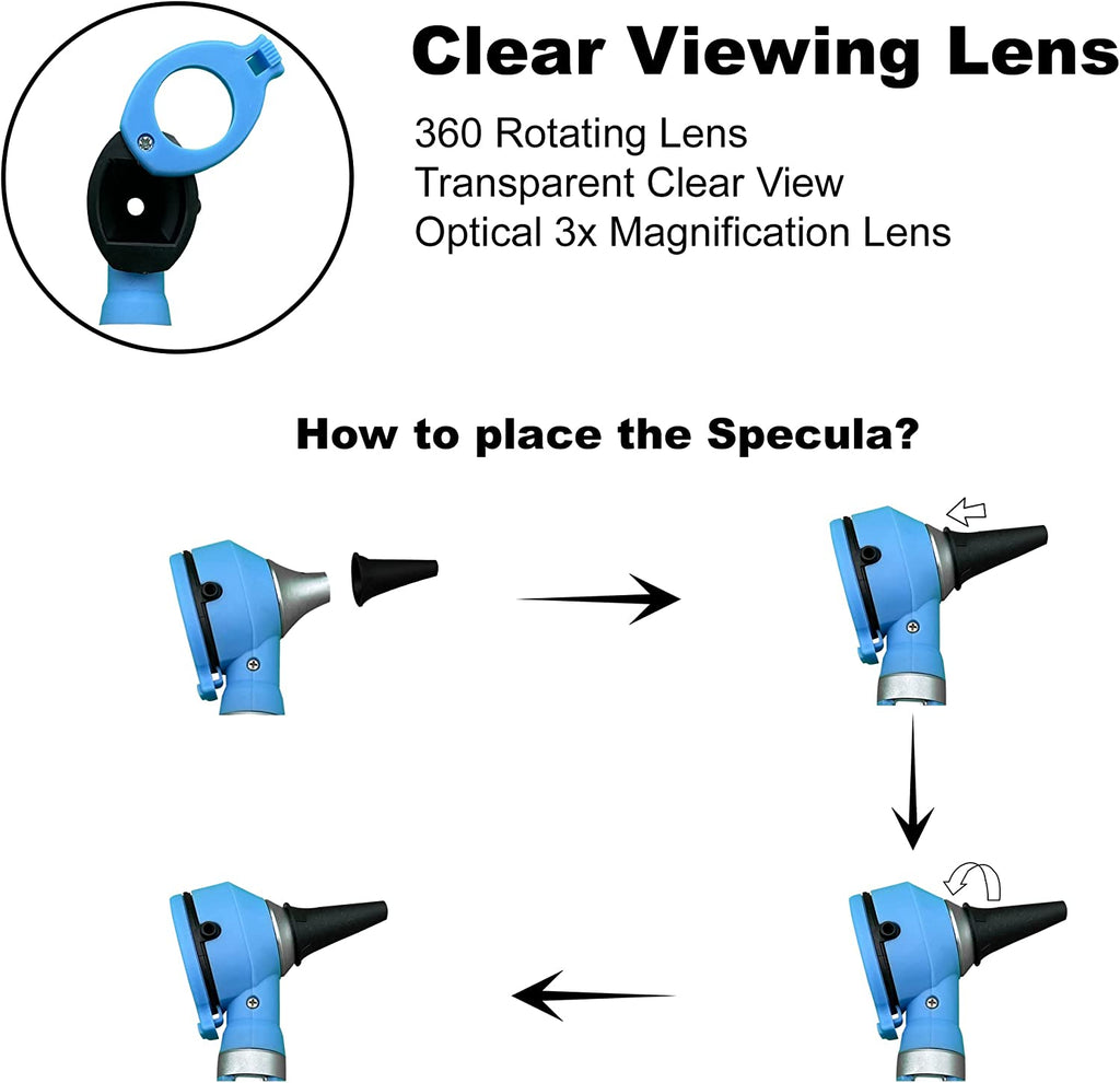 [2.5V LED LAMP & DISTAL FIBEROPTIC (F.O.) ILLUMINATION]: Professional Pocket Otoscope features a 2.5V LED lamp (5000K) dishing out 18.5 lumens for the brightest illumination, true tissue colors and accurate color rendering to help in diagnosing ear infections. Distal Fiber Optic (F.O) enables reflection and obstruction free view of the tympanic membrane and ear canal.
