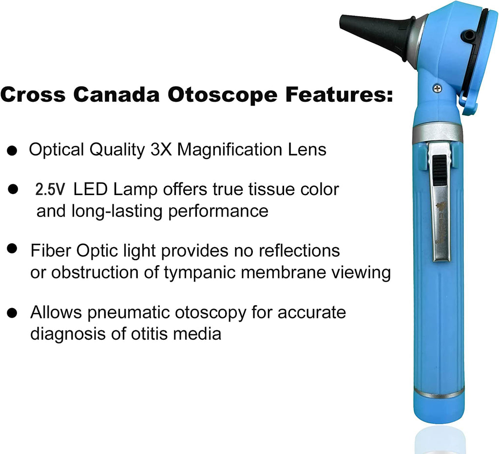 Whether you work in a busy medical office or a hospital, you are a home caregiver, a medical student, a nursing student or even a parent looking after the family at home, this Cross Canada Otoscope for medical professionals will help you visualize, examine, and monitor everything from ear obstructions to examining the fine details of the tympanic membrane and ear canal.