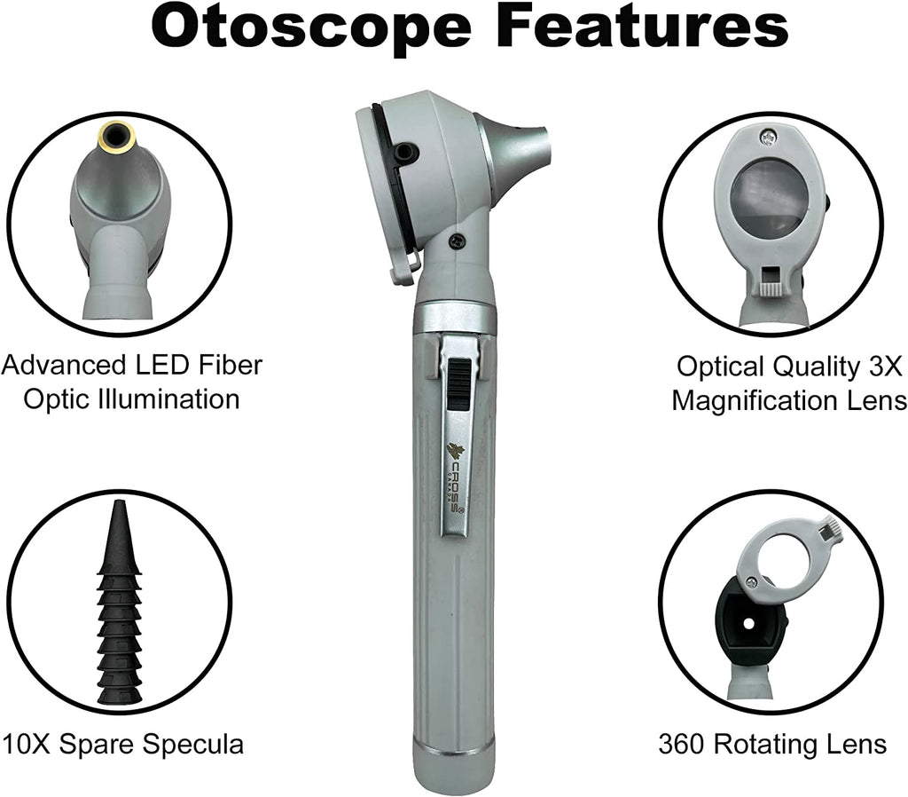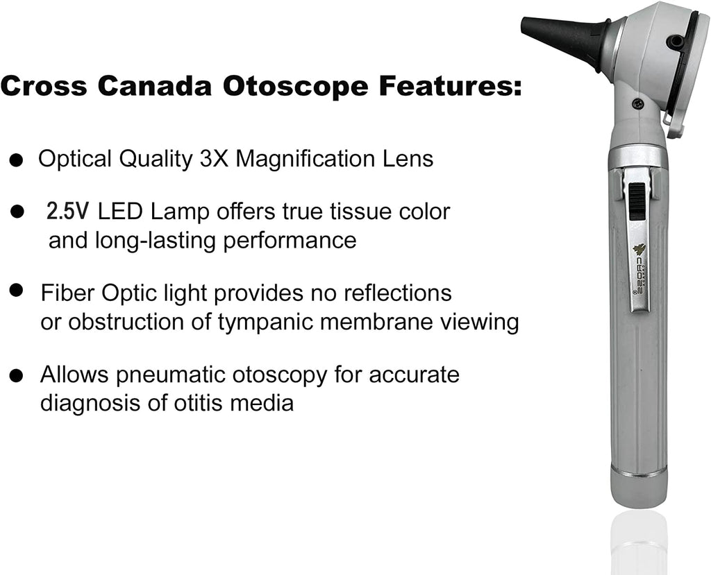 Whether you work in a busy medical office or a hospital, you are a home caregiver, a medical student, a nursing student or even a parent looking after the family at home, this Cross Canada Otoscope for medical professionals will help you visualize, examine, and monitor everything from ear obstructions to examining the fine details of the tympanic membrane and ear canal.