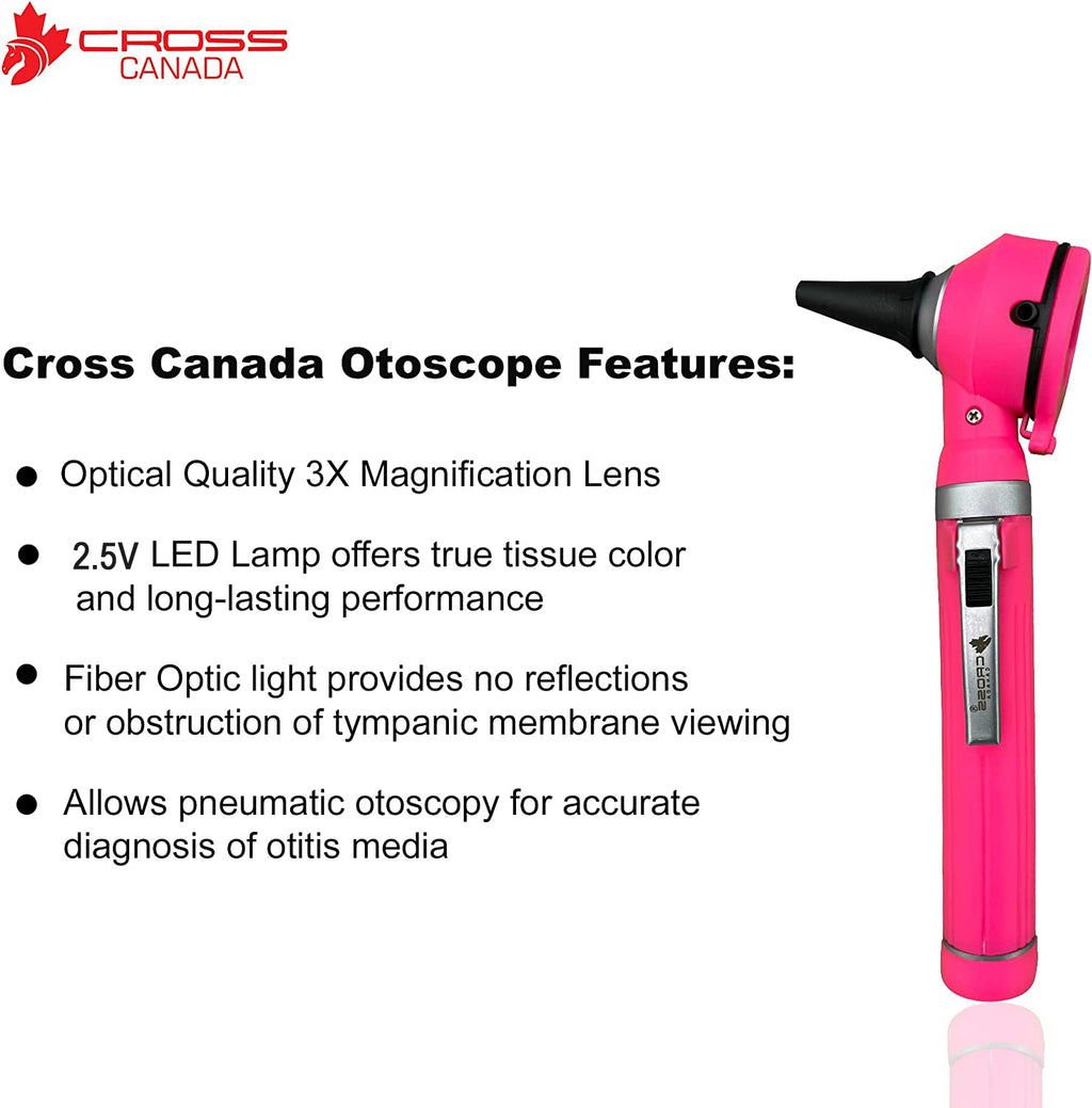Whether you work in a busy medical office or a hospital, you are a home caregiver, a medical student, a nursing student or even a parent looking after the family at home, this Cross Canada Otoscope for medical professionals will help you visualize, examine, and monitor everything from ear obstructions to examining the fine details of the tympanic membrane and ear canal.